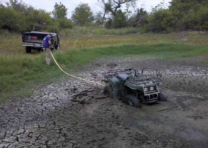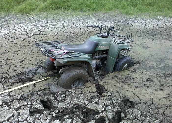 Here is Bret waiting for HELP!!! Here is Bret hooking up the tow rope. Here is Bret's ATV buried above the frame. Back to top of page...
