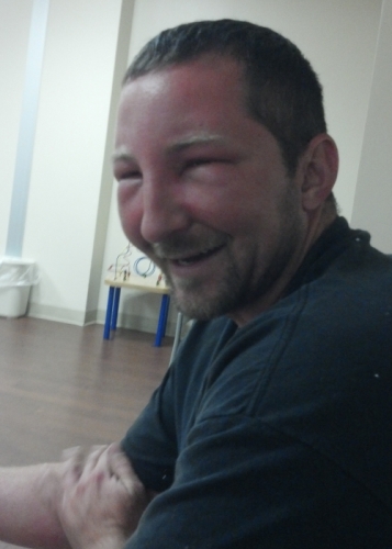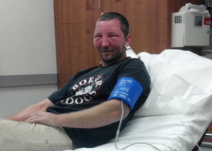 This is what happens when I play too close to Poison Ivy. Here I am in the ER getting a shot for the allergic reaction after they check my vitals. Back to top of page...